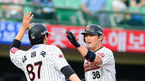 [OSEN=부산, 곽영래 기자] 12일 오후 부산 사직구장에서 열린 '2013 한국야쿠르트 세븐 프로야구' 롯데 자이언츠와 넥센 히어로즈의 경기, 1회말 2사 1,2루 롯데 박종윤이 우측 담장을 넘기는 3점 홈런을 때린 뒤 1루 김응국 코치와
