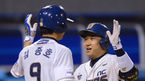 [OSEN=창원,박준형 기자] 14일 오후 경남 창원시 마산구장에서 열린 2013 한국야쿠르트 세븐프로야구 NC 다이노스와 삼성 라이온즈의 경기 4회말 2사 2루 NC 김태군이 2점 홈런을 날리고 김종호와 하이파이브를 하고 있다 이날 경기