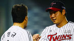 [OSEN=잠실, 민경훈 기자] 14일 오후 서울 잠실구장에서 열린 2013 한국야쿠르트 세븐프로야구 LG 트윈스와 넥센 히어로즈 경기, 6회를 마친 LG 선발 류제국과 이병규가 하이파이브를 하고 있다. 이 날 경기에서 LG과 넥센은 선발로