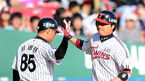 [OSEN=잠실, 이대선 기자] 16일 오후 잠실야구장에서 열린 '2013 한국야쿠르트 세븐 프로야구' LG 트윈스와 넥센 히어로즈의 경기, 2회말 1사 3루에서 LG 이진영이 우월 투런 홈런을 치고 최태원 코치와 하이파이브를 하고 있다. 넥센