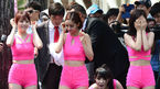 [OSEN=백승철 기자] 24일 오후 서울 장충동 반얀트리 호텔 야외 수영장에서 열린 걸스데이(소진,민아,유라,혜리) 쇼케이스에서 걸스데이 멤버들이 수영장에 입수하는 이벤트를 하고 있다. 상반기 '기대해'로 가요계 섹시열풍을 주