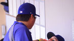 [OSEN=샌디에이고(미국),곽영래 기자] 24일 새벽(한국시간) 미국 캘리포니아 샌디에이고 펫코파크에서 메이저리그 샌디에이고 파드리스와 LA 다저스의 경기에 앞서 류현진이 푼토에게 장난을 치고 있다.다저스는 지난 23일(이하 한