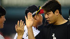 [OSEN=대구, 민경훈 기자] 29일 오후 대구 시민운동장에서 열린 2013 한국야쿠르트 세븐프로야구 삼성 라이온즈와 KIA 타이거즈의 경기, 8회말 선두타자 삼성 채태인이 좌중월 솔로홈런을 날린 후 덕아웃에서 최형우에게 맞고 있다.