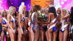 [OSEN/WENN 특약] 28일(현지시간) 미국 라스베이거스에서 열린 제17회 2013 미스 후터스 국제 수영복 미인대회에서1위가 결정된 뒤 참가 미녀들이 여왕을 둘러싼 채 축하 인사를 나누고 있다.이번 대회에서는 미스 켄터키 출신 마리