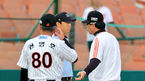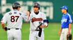 [OSEN=부산, 지형준 기자] 3일 오후 부산 사직구장에서 열린 롯데 자이언츠와 삼성 라이온스의 경기, 2회말 무사 1,3루에서 롯데 박종윤이 동점 1타점 적시타를 날리고 김응국 코치와 주먹을 맞대고 있다. 이틀 연속 외국인 선발 맞