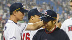 [OSEN=잠실, 백승철 기자] 6일 오후 서울 잠실구장에서 열린 '2013 한국야쿠르트 세븐 프로야구' 두산 베어스와 삼성 라이온즈의 경기 종료 후 정명원 코치가 유희관을 격려하고 있다. 선발 투수가 경기를 만들고 적절할 때 점수가