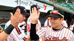 [OSEN=광주, 최규한 기자] 6일 오후 광주 무등경기장에서 '2013 한국야쿠르트 세븐 프로야구' KIA 타이거즈와 롯데 자이언츠의 경기가 열렸다. 1회말 KIA공격 2사 2, 3루 상황 5번타자 이범호를 좌익수 플라이로 잡아내며 무실점으로