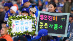 [OSEN=샌프란시스코, 곽영래기자] 6일(한국시간) 미국 캘리포니아주 샌프란시스코에서 열린 2013 메이저리그 샌프란시스코 자이언츠와 LA 다저스의 경기에 앞서 교민 팬들이 류현진을 응원하는 문구를 들고 응원을 펼치고 있다크