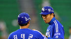 [OSEN=잠실, 지형준 기자] 7일 오후 서울 잠실야구장에서 열린 '2013 한국야쿠르트 세븐 프로야구' 두산 베어스와 삼성 라이온즈의 경기, 3회초 1사 1,2루에서 삼성 채태인이 역전 적시타를 김태균 코치와 기뻐하고 있다. 삼성이 선