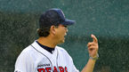 [OSEN=잠실, 지형준 기자] 7일 오후 서울 잠실야구장에서 열린 '2013 한국야쿠르트 세븐 프로야구' 두산 베어스와 삼성 라이온즈의 경기, 1회말 2사 2루에서 우천으로 경기가 중단되자 삼성 선발 장원삼이 심판에 공을 건네고 있다.