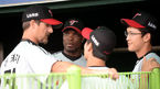 [OSEN=목동, 곽영래 기자] 7일 오후 서울 목동 야구장에서 열리는 '2013 한국야쿠르트 세븐 프로야구' 넥센 히어로즈와 LG 트윈스의 경기전 LG 리즈와 문선재가 주키치와 이야기를 나누고 있다. LG는 외국인 좌투수 벤자민 주키치가