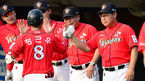 [OSEN=대구, 곽영래 기자] 11일 오후 대구 시민운동장에서 열린 '2013 한국야쿠르트 세븐프로야구' 삼성 라이온즈와 SK 와이번스의 경기, 1회초 SK 세든이 솔로 홈런을 때리고 더그아웃으로 들어오는 정근우와 하이파이브를 하고 있