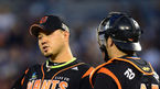 [OSEN=창원, 곽영래 기자] 12일 오후 창원 마산구장에서 열린 '2013 한국야쿠르트 세븐 프로야구' NC 다이노스와 롯데 자이언츠의 경기, 4회말 1사 1,3루 롯데 송승준이 NC 이현곤에게 적시타를 허용한 뒤 강민호와 이야기를 나누고