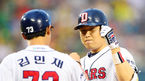 [OSEN=잠실, 민경훈 기자] 13일 오후 서울 잠실구장에서 열린 2013 한국야쿠르트 세븐프로야구 두산 베어스와 KIA 타이거즈의 경기, 4회말 1사 주자 1,3루 두산 양의지가 좌익수 오른쪽 1타점 적시타를 날린 후 1루에서 김민재 코치와