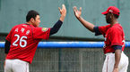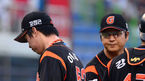 [OSEN=잠실, 민경훈 기자] 13일 오후 서울 잠실구장에서 열린 2013 한국야쿠르트 세븐프로야구 두산 베어스와 KIA 타이거즈의 경기, 1회말을 마친 KIA 선발 소사가 서재응과 하이파이브를 하고 있다. 최근 상승세를 띠는 두산은 반게