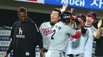[OSEN=부산, 최규한 기자] 16일 오후 부산 사직구장에서 '2013 한국야쿠르트 세븐 프로야구' 롯데 자이언츠 대 LG 트윈스의 경기가 열렸다. 연장 11회초 LG 공격 2사 2루 상황 9번타자 오지환이 우중월 투런포를 날리고 최태원 코치와