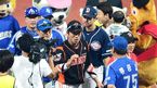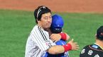 [OSEN=포항, 최규한 기자] 19일 오후 경북 포항시 포항야구장에서 '2013 한국야쿠르트 세븐 프로야구 올스타전'이 열렸다. 경기 종료후 진행된 불꽃놀이 행사를 앞두고 LG 이병규가 미스터 올스타로 선정된 롯데 전준우와 대화를 나