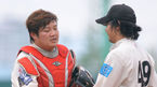 [OSEN=구의,박준형 기자]20일 오후 서울 구의야구장에서 열린 '제4회 니베아 맨 컵 전국생활체육 야구대회' 8강 조마조마와 GMB의 경기. 1회초 2실점 허용한 조마조마 황인성 선발투수와 정순길 포수가 이닝종료 후 서로를 격려하며