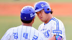 [OSEN=대구, 민경훈 기자] 24일 오후 대구시민구장에서 열린 2013 한국야쿠르트 세븐프로야구 삼성 라이온즈와 NC 다이노스의 경기, 2회말 선두타자 삼성 이승엽이 우중간 2루타를 날린 후 2루에서 김태균 코치와 하이파이브를 하고
