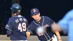 [OSEN=목동, 최규한 기자] 24일 오후 서울 목동야구장에서 '2013 한국야쿠르트 세븐 프로야구' 넥센 히어로즈 대 두산 베어스의 경기가 열렸다. 1회초 두산 공격 2사 2, 3루 상황 오재원의 1타점 적시타때 홈을 밟은 최준석이 더그아
