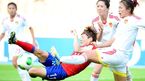 [OSEN=화성, 지형준 기자] 24일 오후 경기도 화성종합경기타운에서 열린 2013 동아시안컵 축구선수권대회 여자부 2차전 한국과 중국의 경기, 전반 한국 지소연이 문전에서 중국 수비수에 걸려 넘어지고 있다. 국제축구연맹(FIFA) 랭