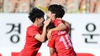 [OSEN=화성, 지형준 기자] 24일 오후 경기도 화성종합경기타운에서 열린 2013 동아시안컵 축구선수권대회 여자부 2차전 한국과 중국의 경기, 전반 한국 김나래가 동점골을 성공시키고 동료선수들과기뻐하고 있다. 국제축구연맹(FI