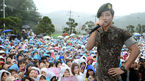 [OSEN=용인, 정송이 기자] 지난 2011년 10월 25일 현역 입대한 가수 초신성 멤버 윤학이 육군 3군사령부에서 21개월 여 간의 군 생활을 마치고 24일 오전 전역했다. 윤학이 팬들에게 인사말을 전하고 있다. 윤학은 3군사령부 내 군악