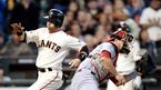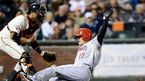 [OSEN=샌프란시스코, 이대선 기자] 25일(한국시간) 미국 캘리포니아주 샌프란시스코에서 열린 2013 메이저리그 샌프란시스코 자이언츠와 신시내티 레즈의 경기, 4회초 1사 1,3루 신시내티 필립스의 희생플라이 때 홈을 밟은 3루주자