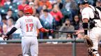 [OSEN=샌프란시스코, 이대선 기자] 25일(한국시간) 미국 캘리포니아주 샌프란시스코에서 열린 2013 메이저리그 샌프란시스코 자이언츠와 신시내티 레즈의 경기, 1회초 1사 3루에서 신시내티 보토의 희생플라이 때 홈을 밟은 3루주