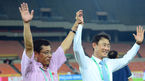 [OSEN=잠실, 백승철 기자] 27일 오후 서울 잠실종합운동장에서 열린 2013 동아시안컵 축구선수권대회 한국과 일본의 경기 종료후 열린 시상식에서 북한 김광민 감독과 한국 윤덕여 감독이 어깨동무를 하고 이야기를 나누고 있다.