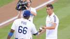 [OSEN=로스앤젤레스, 이대선 기자] 1일(이하 한국시간) 미국 캘리포니아주 로스앤젤레스 다저스타디움에서 열린 2013 메이저리그 LA 다저스와 뉴욕 양키스의 경기에 앞서 레알 마드리드 호날두가 시구를 마친후 푸이그에게 시구공