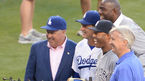 [OSEN=로스앤젤레스, 이대선 기자] 1일(이하 한국시간) 미국 캘리포니아주 로스앤젤레스 다저스타디움에서 열린 2013 메이저리그 LA 다저스와 뉴욕 양키스의 경기에 앞서 레알 마드리드 호날두가 푸이그 머리 위로 향한 첫번째 시