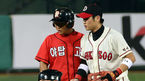 [OSEN=창원,박준형 기자] 6일 오후 경남 창원 마산구장에서 열린 '2013 한국야쿠르트 세븐 프로야구' NC 다이노스와 LG 트윈스의 경기, 6회초 무사 1루 LG 정성훈이 2점홈런을 날린후 김기태 감독과 손가락 하이파이브를 하고 있다 이
