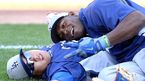 [OSEN=세인트루이스, 이대선 기자] 7일(이하 한국시간) 미국 미주리주 세인트루이스에 위치한 부시스타디움에서 열린 2013 메이저리그 세인트루이스 카디널스와 LA 다저스의 경기, 경기에 앞서 다저스 류현진과 푸이그가 그라운드