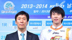 [OSEN=민경훈 기자] 12일 오후 서울 청담동 리베라호텔 베르사유홀에서 열린 2013-14시즌 남자 신인선수 드래프트에서 대한항공 김종민 감독이 2라운드 13순위 정지석을 지명, 함께 포토타임을 갖고 있다. 1라운드 1순위 KEPCO, 1라운