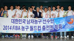 [OSEN=인천국제공항, 정송이 기자] 16년 만에 농구월드컵 출전권을 따낸 남자농구대표팀이 12일 오후 인천국제공항을통해 입국했다. 김민구 이승준 김주성이 포토타임을 갖고 있다. 유재학 감독이 이끄는 한국은 11일 오후 6시(한