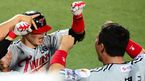 [OSEN=대구, 최규한 기자] 13일 오후 대구구장에서 '2013 한국야쿠르트 세븐 프로야구' 삼성 라이온즈 대 LG 트윈스의 경기가 열렸다. 3회초 LG 공격 2사 1, 3루 상황, 2번타자 권용관이 좌월 스리런포를 날리고 더그아웃 동료들과 인사