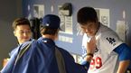 [OSEN=로스앤젤레스, 이대선 기자] 14일(이하 한국시간) 미국 캘리포니아주 로스앤젤레스 다저스타디움에서 열린 2013 메이저리그 LA 다저스와 뉴욕 메츠의 경기, 7회초 수비를 마치고 다저스 류현진이 엘리스와 이야기를 나누고