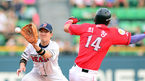 [OSEN=잠실, 박준형 기자] 17일 오후 서울 잠실구장에서 열린 '2013 한국야쿠르트 세븐 프로야구' 두산 베어스와 SK 와이번스의 경기, 1회초 1사 1루 SK 박정권의 타석때 1루 주자 최정이 도루 실패하고 있다. 두산 선발투수 노경은은
