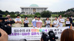 [OSEN=정송이 기자] 동성커플 김조광수-김승환 결혼식 국회의원 초청 기자회견 및 성소수자 4대 인권입법과제 실현 촉구가 22일 오전 서울 국회의사당 정문앞에서 열렸다. 김조광수-김승환이 국회 앞에서 이야기를 나누고 있다.