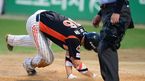 [OSEN=광주, 지형준 기자] 27일 오후 광주 무등경기장에서 열린 '2013 한국야쿠르트 세븐 프로야구' KIA 타이거즈와 롯데 자이언츠의 경기, 2회초 1사 1,3루에서 롯데 3루주자 박종윤이 강민호의 외야플라이에 태그업, 홈에서 슬라이