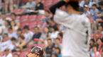 [OSEN=광주, 지형준 기자] 27일 오후 광주 무등경기장에서 열린 '2013 한국야쿠르트 세븐 프로야구' KIA 타이거즈와 롯데 자이언츠의 경기, 2회초 1사 1,3루에서 KIA 소사가 롯데 강민호에 외야플라이로 실점을 허용하고 아쉬워하고