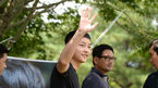 [OSEN=춘천, 이대선 기자] 27일 오후 배우 송중기가 강원도 춘천 102보충대를 통해 현역 입대했다. 배우 송중기가 팬들을 향해 인사를 하고 있다. 송중기는 이날 보충대에 도착, 정문 앞에서 입대 현장을 찾은 팬클럽 및 팬들에게