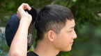 [OSEN=춘천, 이대선 기자] 27일 오후 배우 송중기가 강원도 춘천 102보충대를 통해 현역 입대했다. 배우 송중기가 모자를 벗고 짧게 자른 머리를 만지고 있다. 송중기는 이날 보충대에 도착, 정문 앞에서 입대 현장을 찾은 팬클럽