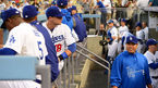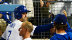 [OSEN=로스앤젤레스, 민경훈 기자] 27일 (이하 한국시간) 미국 캘리포니아주 로스앤젤레스 다저스타디움에서 열린 2013 메이저리그 LA 다저스와 시카고 컵스의 경기, 다저스 류현진이 덕아웃에서 유리베에게 장난 칠 기회를 엿보