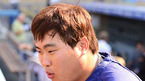 [OSEN=로스앤젤레스, 민경훈 기자] 27일 (이하 한국시간) 미국 캘리포니아주 로스앤젤레스 다저스타디움에서 2013 메이저리그 LA 다저스와 시카고 컵스의 경기가 열릴 예정인 가운데, 경기 전 훈련시간에 류현진이 캐치볼을 오른