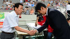 [OSEN=서울월드컵경기장, 박준형 기자] 28일 오후 서울 상암동 서울월드컵경기장에서 열린 '현대오일뱅크 K리그 클래식 2013' FC 서울과 전북 현대의 경기에 앞서 전북 최강희 감독과 FC서울 최용수 감독이 악수를 나누고 있다. 서