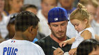 [OSEN=로스앤젤레스, 민경훈 기자] 28일 (이하 한국시간) 미국 캘리포니아주 로스앤젤레스 다저스타디움에서 열린 2013 메이저리그 LA 다저스와 시카고 컵스의 경기, 은퇴한 잉글랜드 축구스타 데이빗 베컴(38)이 딸 하퍼와 함께 관