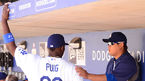 [OSEN=로스앤젤레스, 민경훈 기자] 29일 (이하 한국시간) 미국 캘리포니아주 로스앤젤레스 다저스타디움에서 열린 2013 메이저리그 LA 다저스와 시카고 컵스의 경기, 덕아웃에서 다저스 푸이그가 류현진과 얘기를 나누고 있다. 이