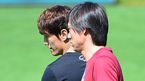 [OSEN=파주, 최규한 기자] 3일 오후 경기도 파주 국가대표 축구 트레이닝 센터(NFC)에서 열린 축구 대표팀 공개훈련에서 홍명보 감독이 이청용과 대화를 나누고 있다. 국내파와 J리거 위주로 꾸려졌던 1, 2기와 달리 이번 홍명보호